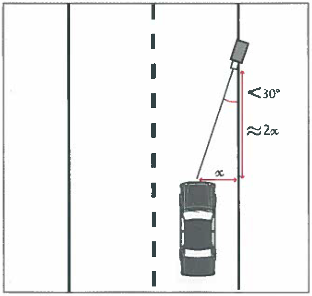 The addition of vertical and lateral angles between the road and the boresight axis should not exceed 30 degrees.