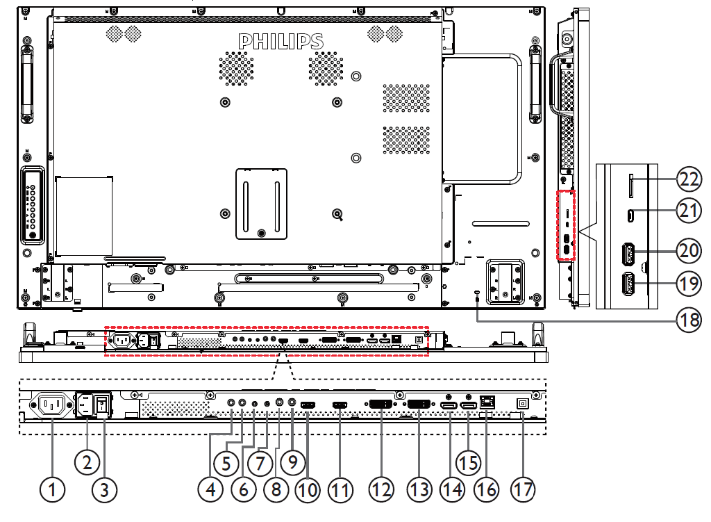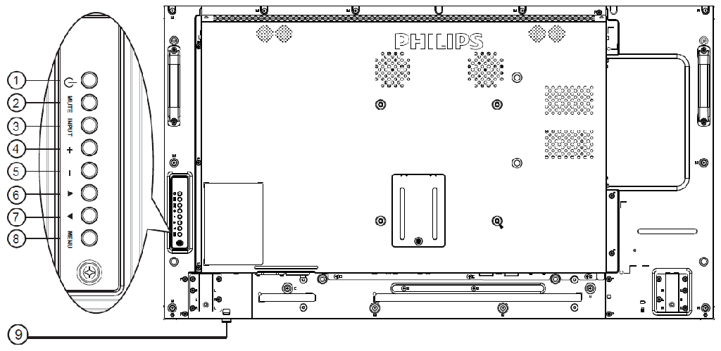 Indicates the operating status of the display without OPS: Lights green when the display is turned on Lights red when the display is in standby mode Lights amber when the display enters APM mode When {SCHEDULE} is enabled, the light blinks green and red If the light blinks red, it indicates that a failure has been detected Lights off when the main power of the display is turned off