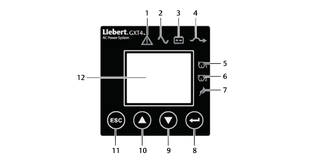 The operation and display panel on the front of the GXT4 has control buttons, LED indicators and a